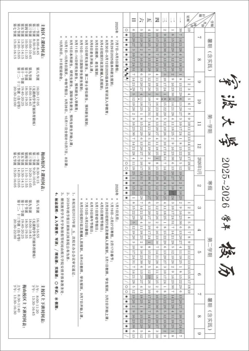 "宁波大学2025-2026学年校历解读与重要日期一览"