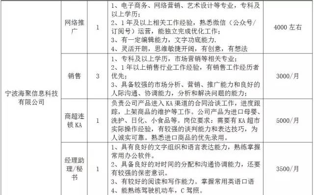 从海曙区人社局得到一个好消息,周日(5月21日9:00-14:00),在宁波(国际)电子商务产业园内将举办一场电商人才专场招聘会。45家单位,170个岗位,需求人数超530名,年薪最高20万!快快快,投简历吧!